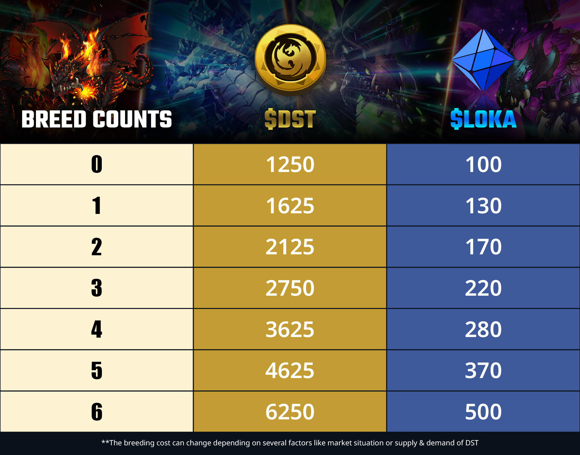 Breeding Cost Table: