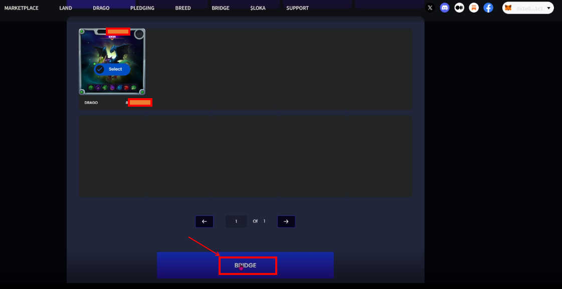 - Select either ETH or POL drago you wish to bridge. For this guide, will be ETH drago. So make sure check your metamask network is ETH.