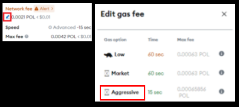 - Bridge again by set to aggressive fee, approve and confirm the transaction: